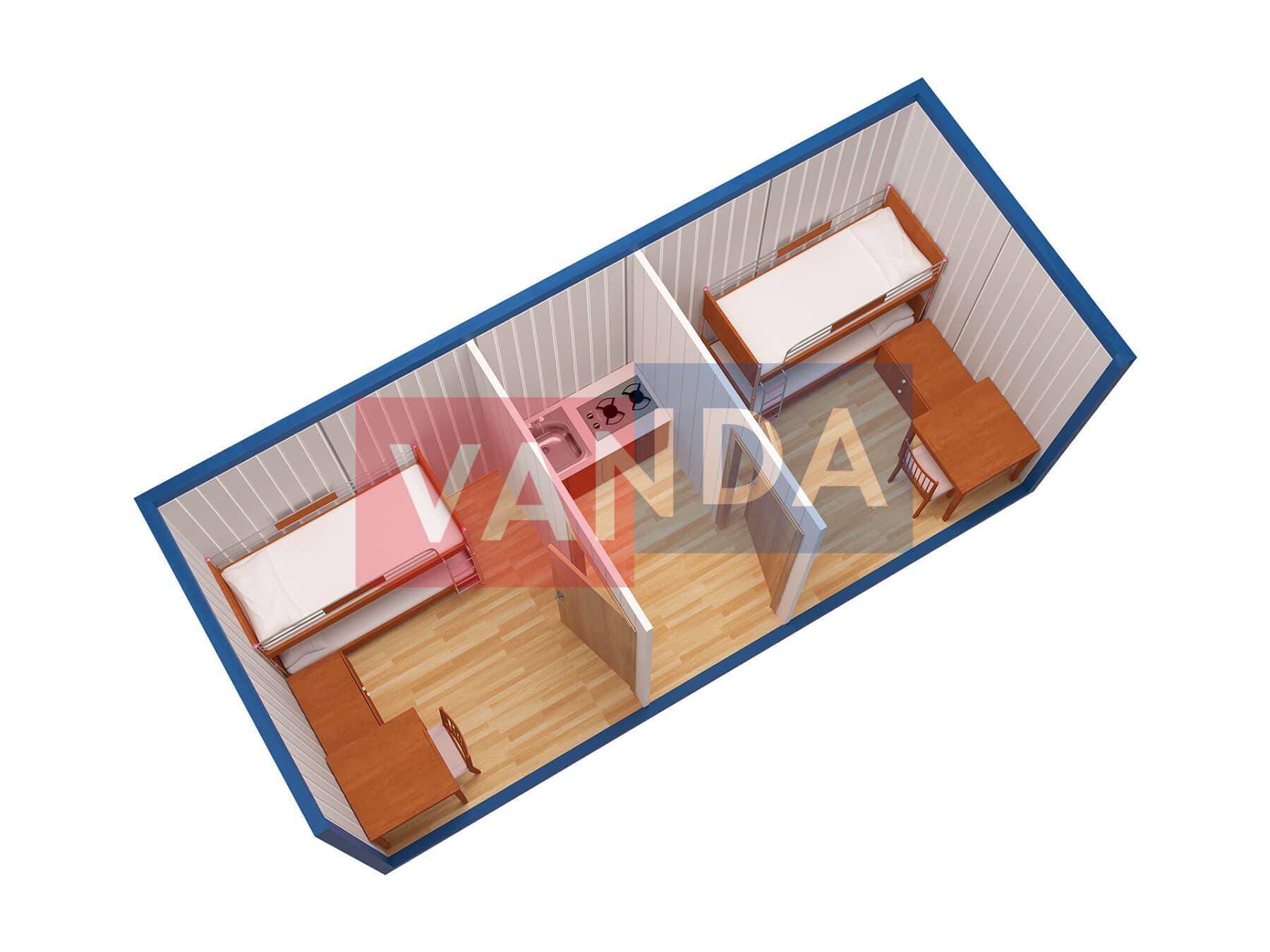 Металлическая бытовка без тамбура 5,85 x 2,4 - Оргалит ДВП